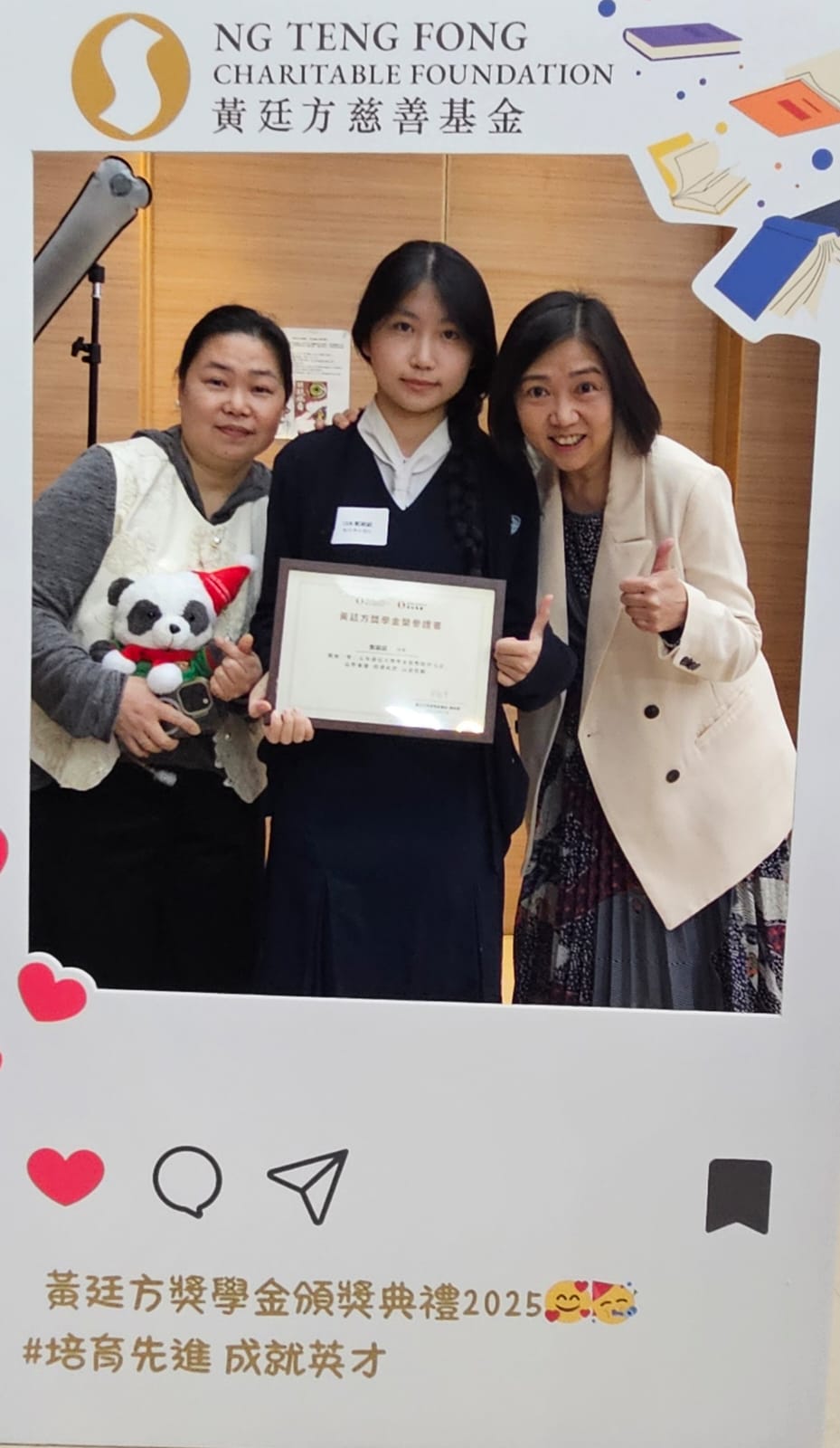 恭賀4A 鄭穎錤同學獲頒「黃廷方獎學金」,頒獎典禮於2025年12月17日假尖沙咀街坊福利會尖沙咀會堂舉行。