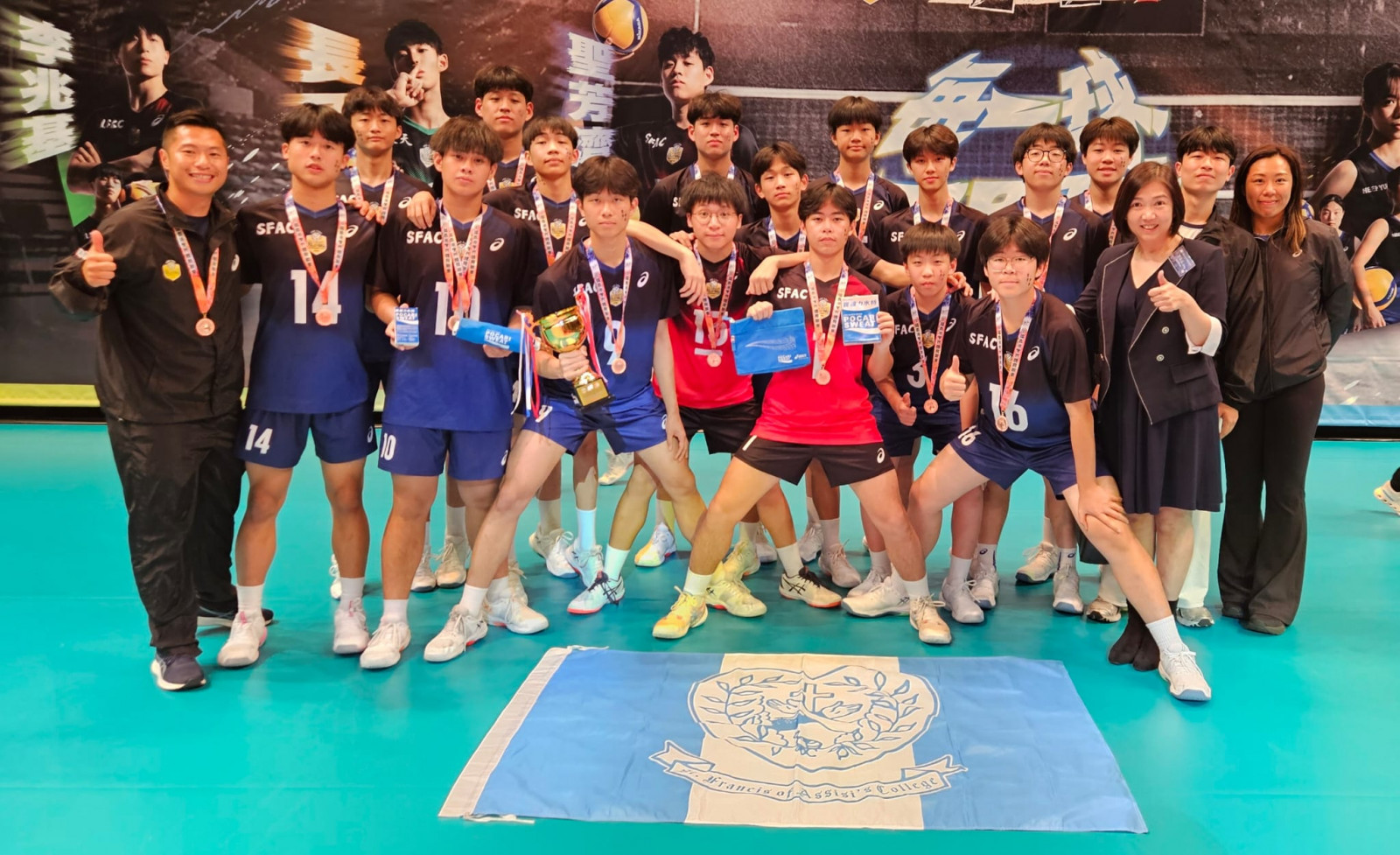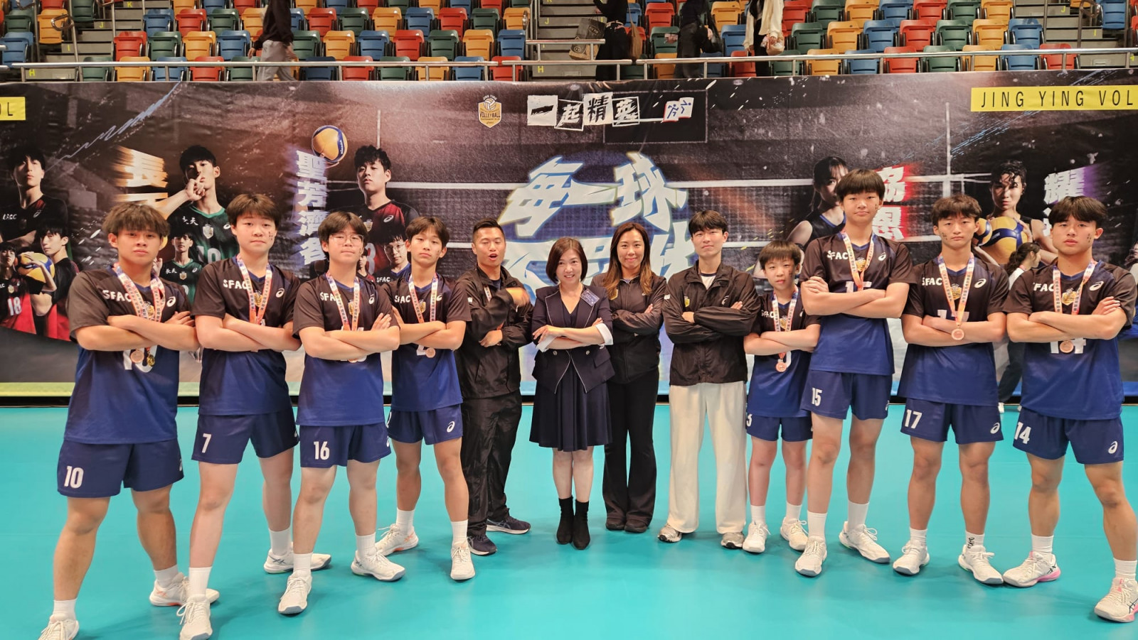 經過兩天在伊利沙伯體育館舉行的全港學界精英排球比賽四強賽及季軍戰,我校男子排球隊連續兩屆勇奪 全港學界精英排球男子組季軍 。男子排球隊隊員在球場上全力發揮,展現了聖芳一條心,運動員力爭上游的精神。