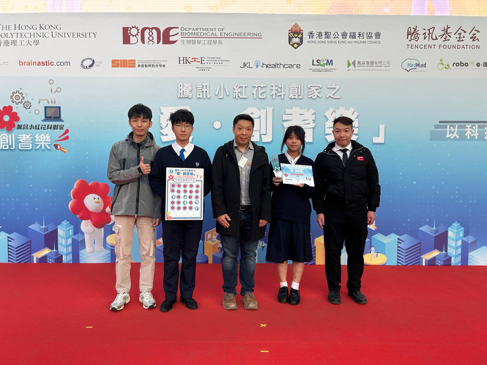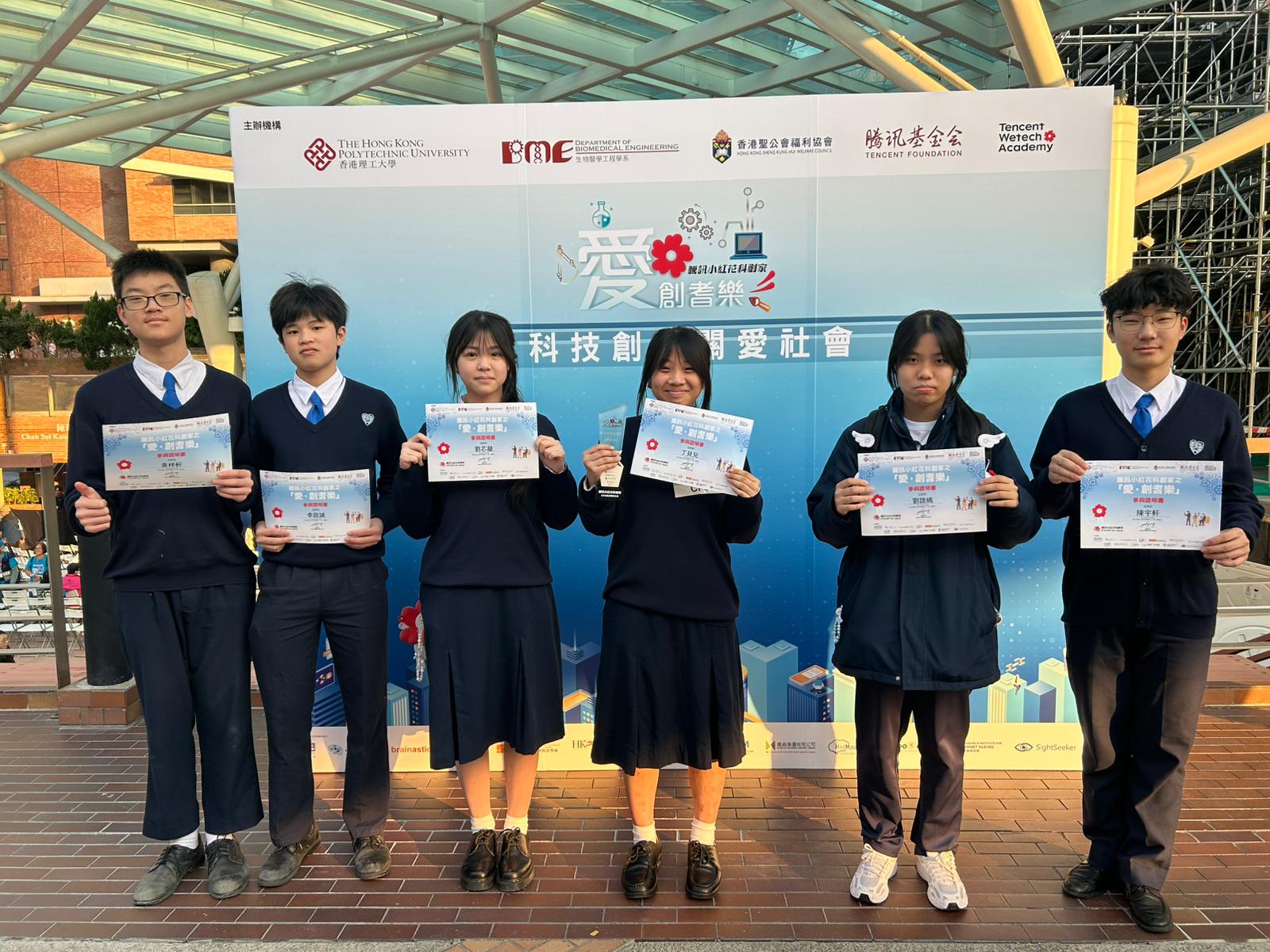 6位中三級同學於2026年1月10日參加理工大學主辦「騰訊小紅花科創家 愛創耆樂設計賽」。其中丁貝兒同學(3A)及陳宇軒同學(3A)的作品:「足手鍛鍊機」獲得「最受用戶喜愛獎 中學組第四名」。