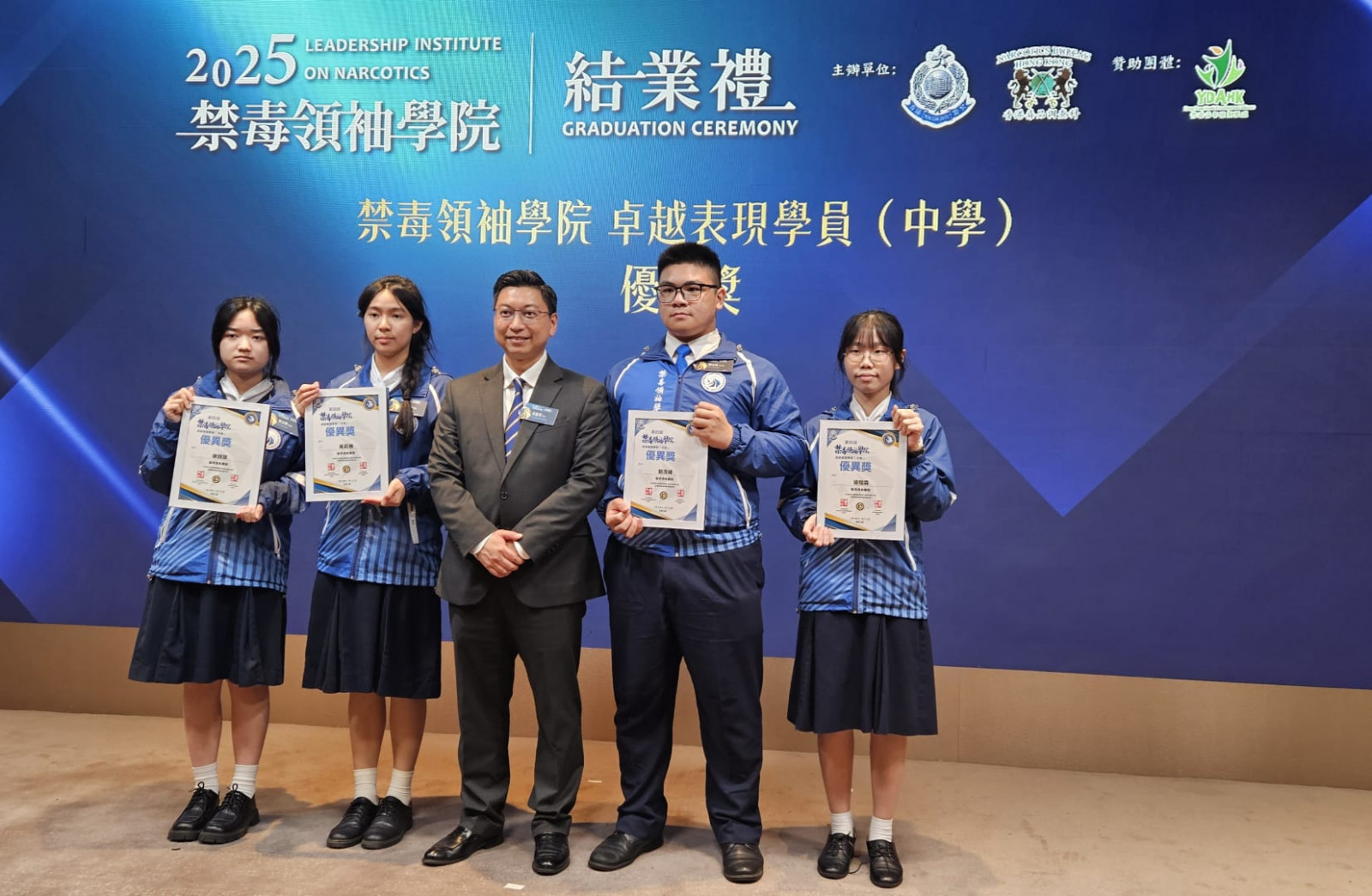 本校在上年成功獲選為第四屆「禁毒領袖學院」學員。經過一年來自不同專業領域的顧問提供系統化的訓練,並透過小組導師帶領學員設計及執行抗毒活動,激發學員的社會責任感,本校學生已成為重視道德責任及公民意識的領袖,並於畢業禮上獲頒「卓越表現學員優異奬」及「滅罪精英運動會2025」最受歡迎攤位獎,從中可看到同學的付出與得著。