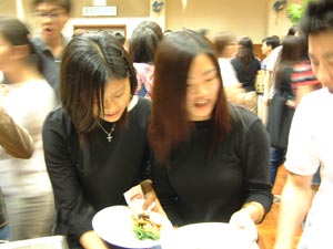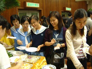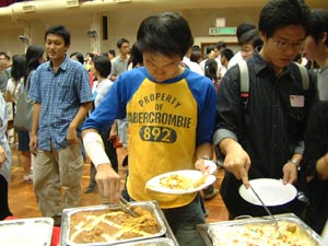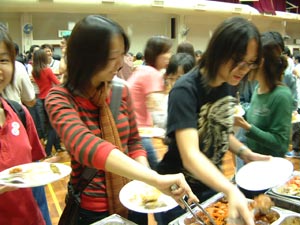 會員大會過後,便是自助晚餐的開始。取餐的人龍排至禮堂外邊