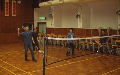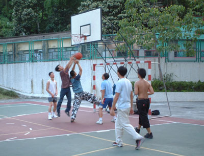 籃球場這邊同場熱鬧,新舊校友正在切磋球技