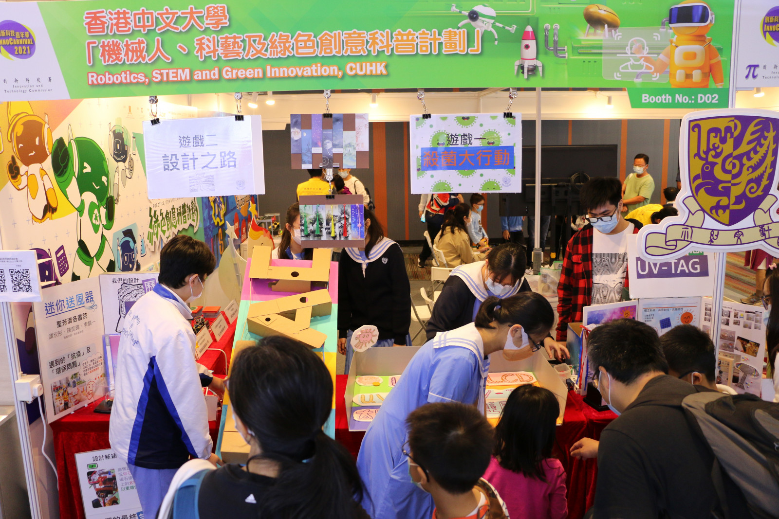 本校團隊於會場設置了展板,介紹獲獎作品的設計歷程,並與各界來賓交流設計的經驗。與此同時,團隊同學亦特別設計了與獲獎作品主題相關的攤位遊戲,讓來賓在歡樂中理解創意小發明。