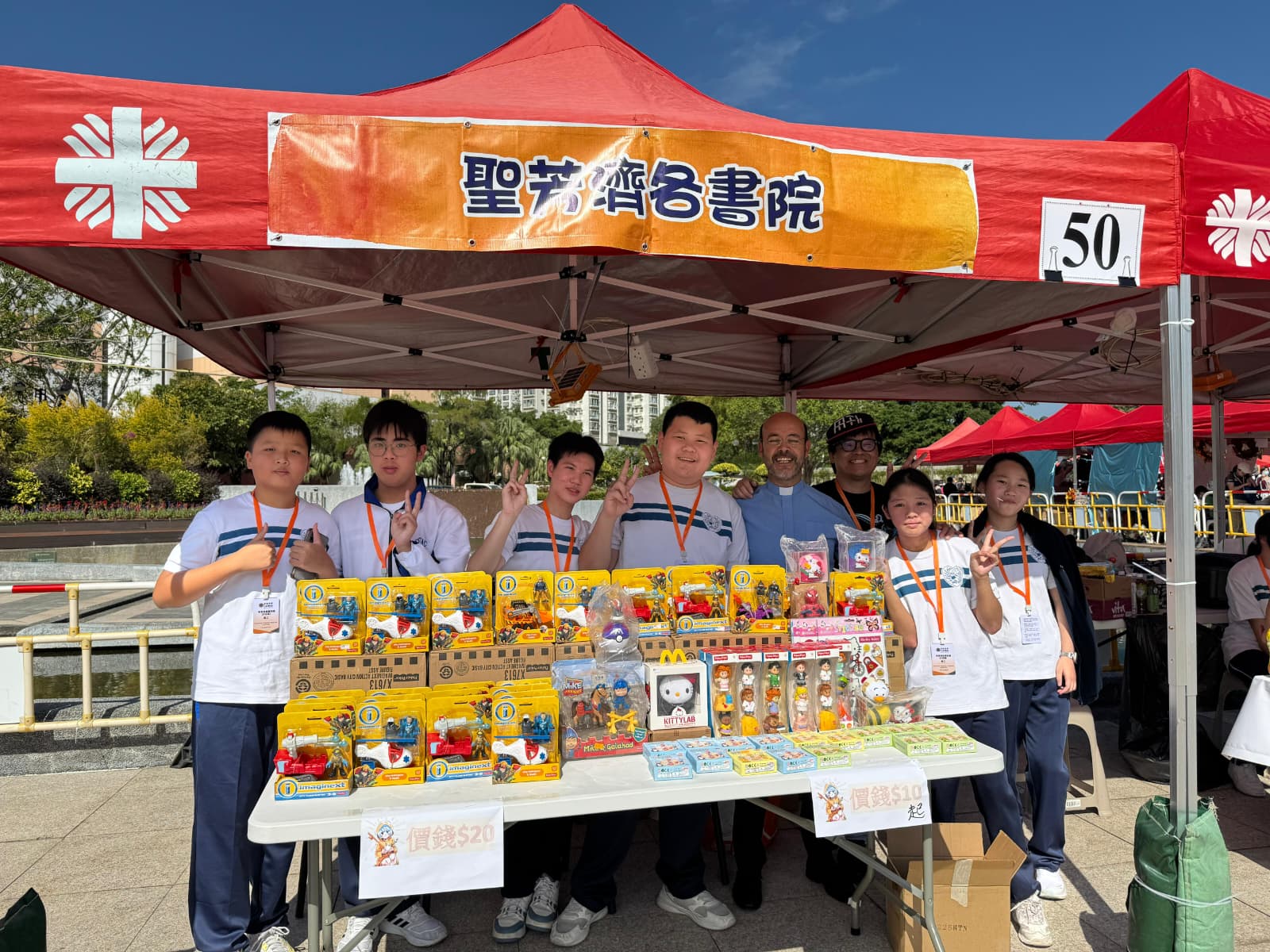 本校積極協助明愛機構幫助弱勢社群,除了推廣購買明愛獎券外,老師們聯同30位中一至中六級學生義工參與11月23日在沙田中央公園舉行的沙田區明愛賣物會,積極為慈善事工籌款。